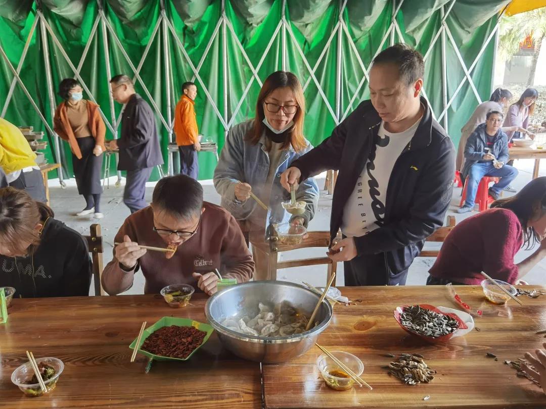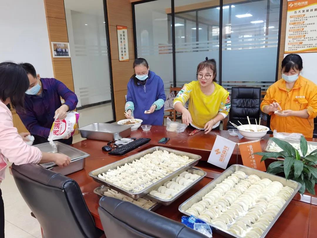 运动当天,吴董亲自向导各部分职员包饺子,现场气氛温馨有趣。每一只饺子都倾注了深深地祝福和眷注。其中尚有硬币饺子环节,谁吃到硬币2021就会福运一直~