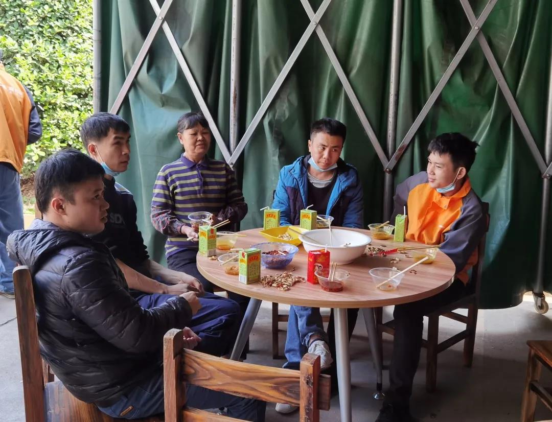 吴董亲自为大伙煮饺子,现场每位同事都井然有序地排着队,领取吴董的爱心饺子。“好吃不过饺子”品尝过的同事都赞一直口。