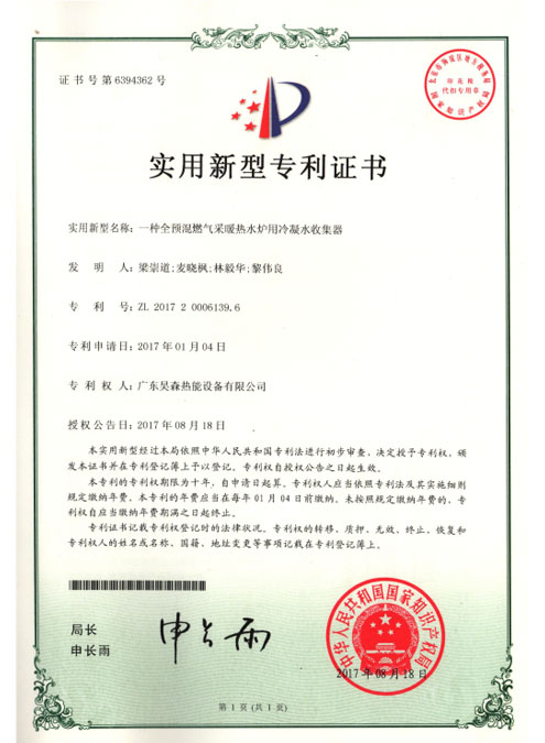 适用新型专利证书